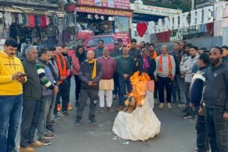 रानीखेत में हिंदूवादी संगठनो का फूटा गुस्सा, बांग्लादेश का पुतला दहन कर दीपू चंद दास की हत्या पर जताया आक्रोश। बांगलादेश में भीड़ द्वारा पीट कर जिन्दा जलाये गए दीपू चंद दास की हत्या, महिलाओ से बलात्कार और धर्म परिवर्तन के विरोध में हिंदूवादी संगठनो द्वारा रानीखेत के गाँधी चौक…