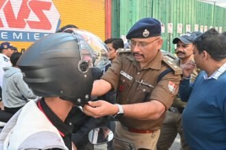 अल्मोड़ा में बिना हेलमेट दोपहिया वाहनों को चालान की जगह मिले निःशुल्क हेलमेट, जिलाधिकारी और एसएसपी अल्मोड़ा ने चलाया अनूठा अभियान। दोपहिया वाहन चालकों में हेलमेट के लिए जागरूकता लाने के उद्देश्य से आज अल्मोड़ा में जिला प्रशासन द्वारा निःशुल्क हेलमेट वितरित किये गए। यह जिलाधिकारी अल्मोड़ा अंशुल सिंह व…