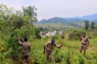 अल्मोड़ा पुलिस ने पूरे जनपद में एक साथ चलाया अभियान, 375 नाली भांग की खेती पर चला अल्मोड़ा पुलिस का डंडा, ग्रामीणों को नशे के दुष्परिणामों से जागरुक कर नशा मुक्ति का दिया संदेश। अल्मोड़ा पुलिस द्वारा ड्रग्स फ्री देवभूमि मिशन के तहत चरस व गांजा जैसे मादक पदार्थो की…