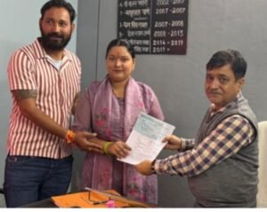 ब्लॉक प्रमुख ताड़ीखेत के पद के लिए आज 3 प्रत्याशियों ने अपना नामांकन दाखिल कर ब्लॉक प्रमुख पद पर अपना दावा ठोंक दिया है। इसमें से भाजपा की अधिकृत प्रत्याशी के रूप में विमला रावत ने अपना नामांकन दाखिल किया है। दूसरा नामांकन कांग्रेस पृष्टभूमि की रचना रावत ने दाखिल किया है, हालाँकि यहाँ कांग्रेस ने अपना अधिकृत प्रत्याशी घोषित नहीं किया था। ब्लॉक प्रमुख के तीसरे दावेदार के रूप में बबली मेहरा ने नामांकन कराया है। वह पहली बार क्षेत्र पंचायत सदस्य बनी है।