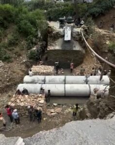 ताड़ीखेत ब्लॉक मुख्यालय के पास पूल टूटने के कारण पिछले 7 दिनों से रानीखेत का सौनी – ड्योडाखाल -चमड़खान – बिनसर क्षेत्र से टूटा संपर्क आज कुछ हद तक बहाल हो गया है। पहाड़ी की ओर कटान कर अस्थायी वैकल्पिक मार्ग बना कर दोपहिया और छोटे चार पहिया वाहनों के आने जाने लायक मार्ग बनाया गया है। जिससे आम जनता को कुछ राहत मिलने की उम्मीद है। हालाँकि बस और ट्रक के आने जाने के लिए अभी यह मार्ग नहीं खुल पाया है।