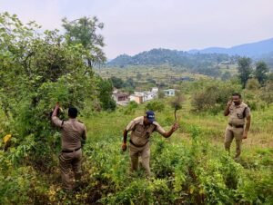 अल्मोड़ा पुलिस ने पूरे जनपद में एक साथ चलाया अभियान, 375 नाली भांग की खेती पर चला अल्मोड़ा पुलिस का डंडा, ग्रामीणों को नशे के दुष्परिणामों से जागरुक कर नशा मुक्ति का दिया संदेश।