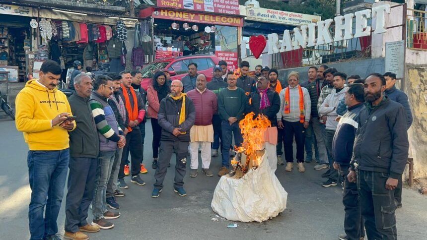 रानीखेत में हिंदूवादी संगठनो का फूटा गुस्सा, बांग्लादेश का पुतला दहन कर दीपू चंद दास की हत्या पर जताया आक्रोश।